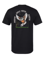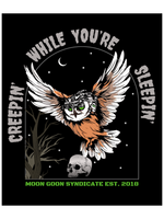 This ain’t your average morale tee—it’s a nod to the night walkers, the shadows, the professionals who do their best work while the rest of the world is tucked in and clueless. Our “Creepin’ While You’re Sleepin’” shirt features a badass owl in night vision goggles, swooping in over a skull, with the moon and stars casting light on the kind of silent precision that only comes with training—and a bit of attitude.