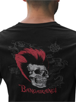 Right smack on the chest, the word "Bangarang" blasts across a dreamy, gritty Neverland background, stylized with Rufio’s iconic red mohawks blazing like fire and his sword slamming down at the end like an exclamation point. Because punctuation is important, especially when you’re about to go to war with pirates... or Mondays.